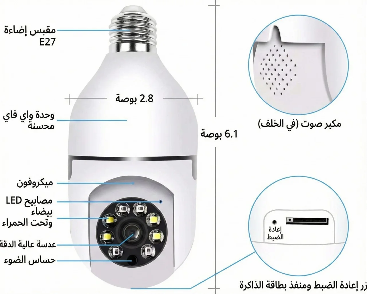 كاميرا المراقبة اللاسلكية (WiFi) بمدخل E27 (زي اللمبة العادية):